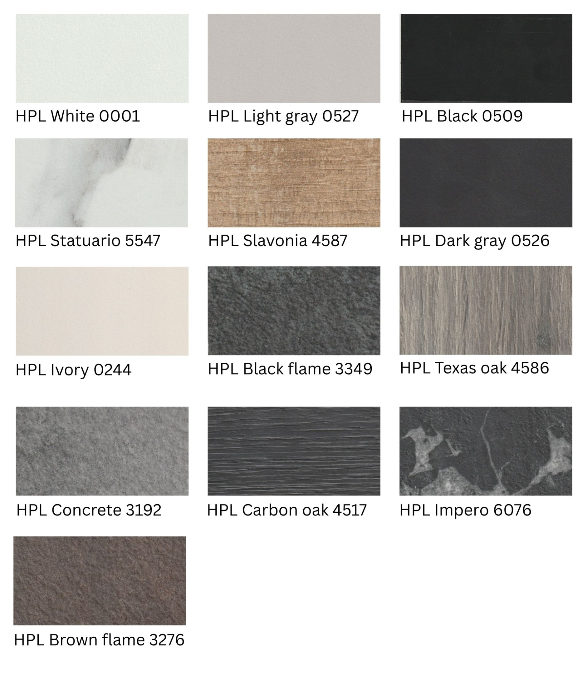 Top HPL disponibile in versione: 40x105cm, 40x125cm, 40x145cm, 40x165cm