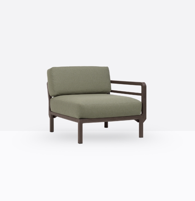 Maximo D è una Poltrona con braccioli con struttura in resina rigenerata, Acquistabile singolarmente o progettabile come elemento compositivo del divano modulare.