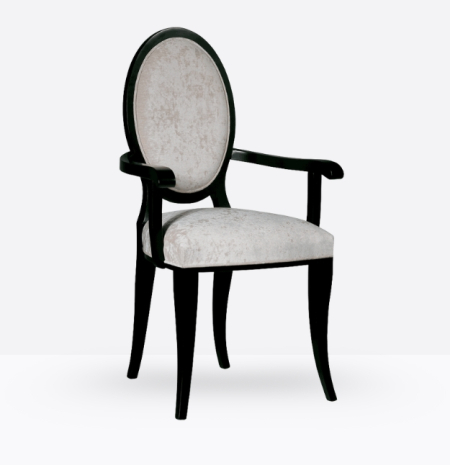 La poltroncina Molly P ha una struttura in legno di faggio massello ed uno schienale in legno di faggio multistrato curvato rivestito; può essere personalizzata in tutte le tinte legno e i colori laccati nella sezione finiture.