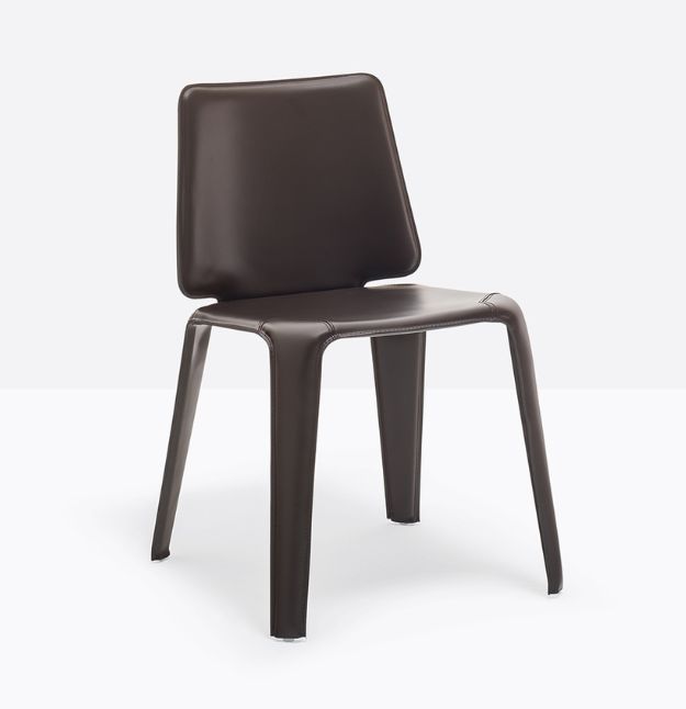 Mood 720 è una seduta importante e raffinata, dalle forme e dai profili morbidi. Sedia con struttura in acciaio rivestita in cuoio naturale.