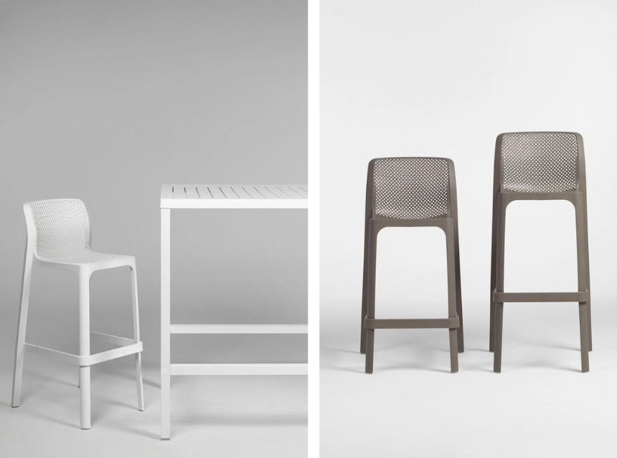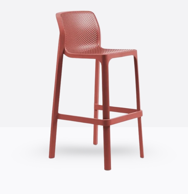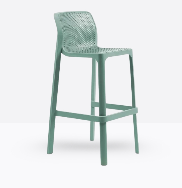 Lo sgabello Net Stool, dalle linee fluide e pulite in resina fiberglass. Proposta in sei ricercati e polivalenti colori dall’effetto mat.