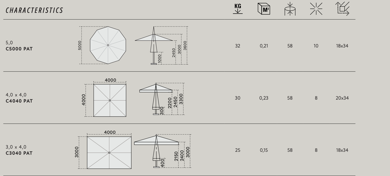 | Copertura max | 400×400 / Diametro 500 cm |