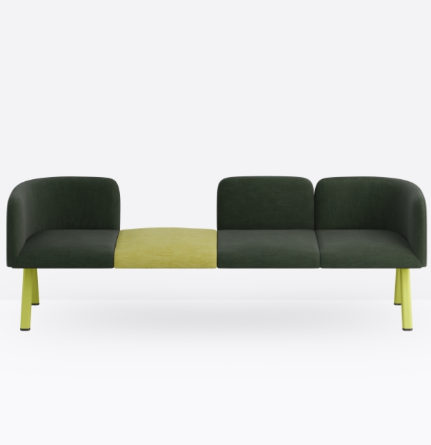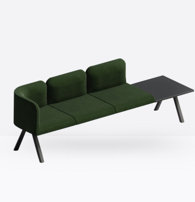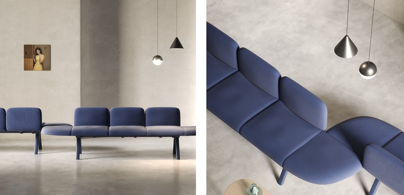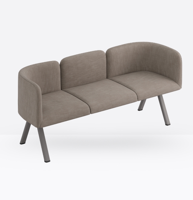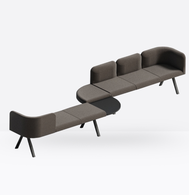 Panky è il sistema di sedute modulare e personalizzabile per arredare gli spazi dedicati all’attesa e all’accoglienza, basato sulla struttura a cavalletto 2027 che consente l’abbinamento con gli arredi operativi dell’ufficio. La creazione di una configurazione si svolge in 3 semplici step, riportati di seguito: scegliere la struttura, disponibile in 3 lunghezze; comporre il divano con cuscini, cuscini con schienale e/o bracciolo, piani; ed infine collegare la composizione con connessioni a 45° o 90°, siano esse realizzate con piani di servizio o cuscini