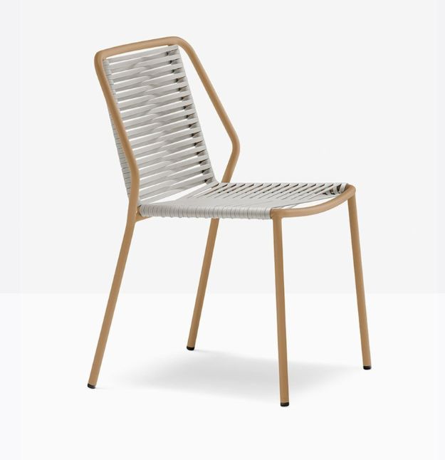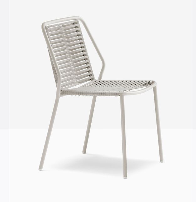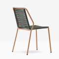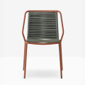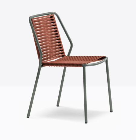 La sedia Philia 3900 è caratterizzata da linee razionali e geometriche, che si fondono a una gentilezza di forme più morbide tipiche del corpo umano. si distingue per un telaio resistente in tubo d’acciaio Ø 20 mm verniciato per esterno, mentre la seduta e lo schienale sono intrecciati con una fettuccia in estruso di PVC con anima in nylon.