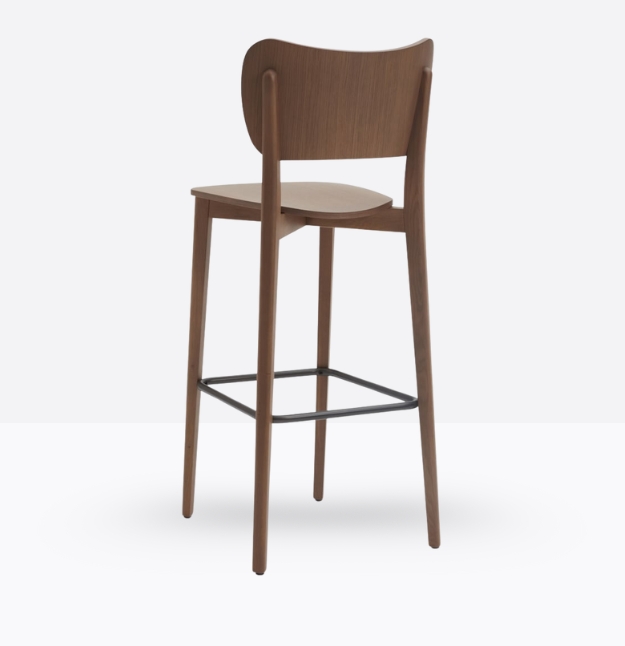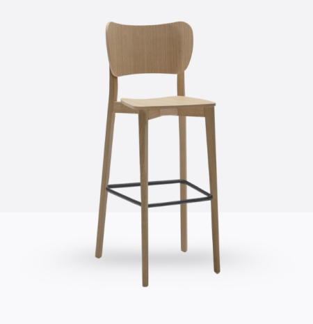 Lo sgabello Rami R342 ha una struttura in legno di rovere massello ed un ampio schienale in legno di rovere multistrato curvato e sagomato, può essere personalizzato in tutte le tinte e i colori laccati visibili in questa scheda o alla sezione finiture del sito, nonchè in tinta cliente o colori a campione, la seduta nella versione slim è in legno di rovere multistrato curvato, il poggiapiedi è in metallo satinato.