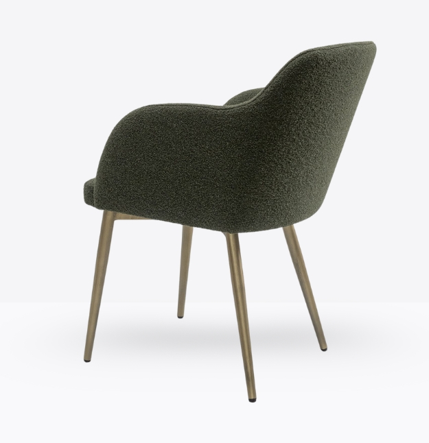 La poltroncina Romeo unisce design moderno e comfort, grazie alla sua seduta imbottita rivestita in similpelle effetto vintage e alle eleganti gambe coniche in metallo cromato. Perfetta per arredare ristoranti, bar, hotel e spazi contract con un tocco sofisticato e accogliente.