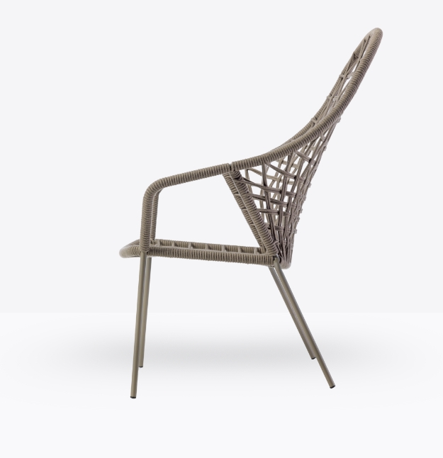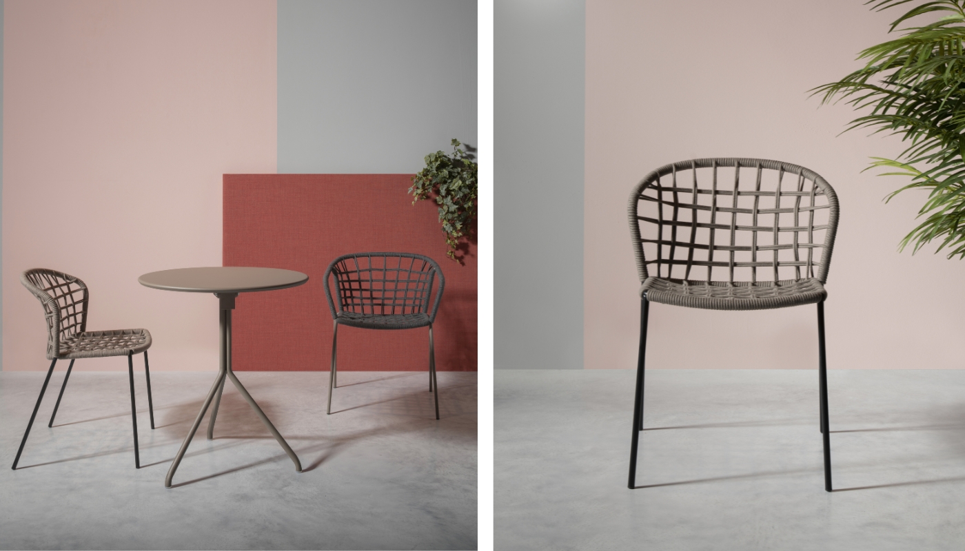 Sanela Lounge è una moderna collezione di sedute per il contract, caratterizzata dall’intreccio artigianale della corda italiana in poliestere con anima acrilica, resistente alla luce e alle intemperie, antimacchia, idrooleorepellente con trattatameno al Teflon.