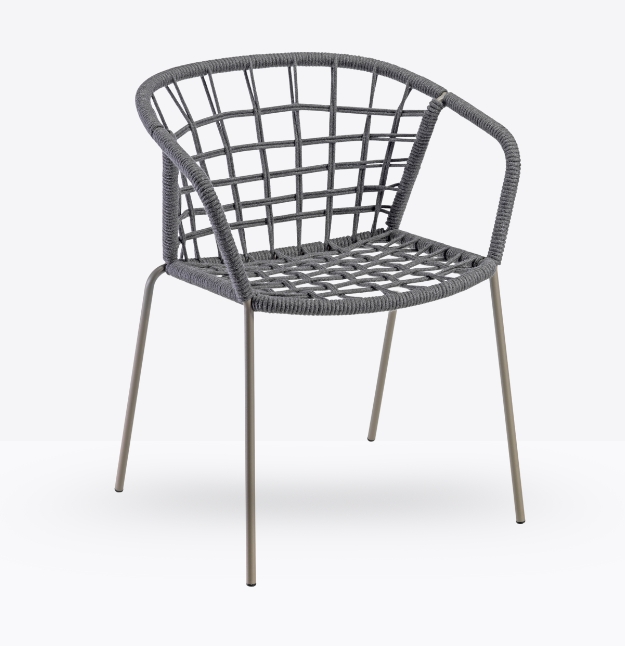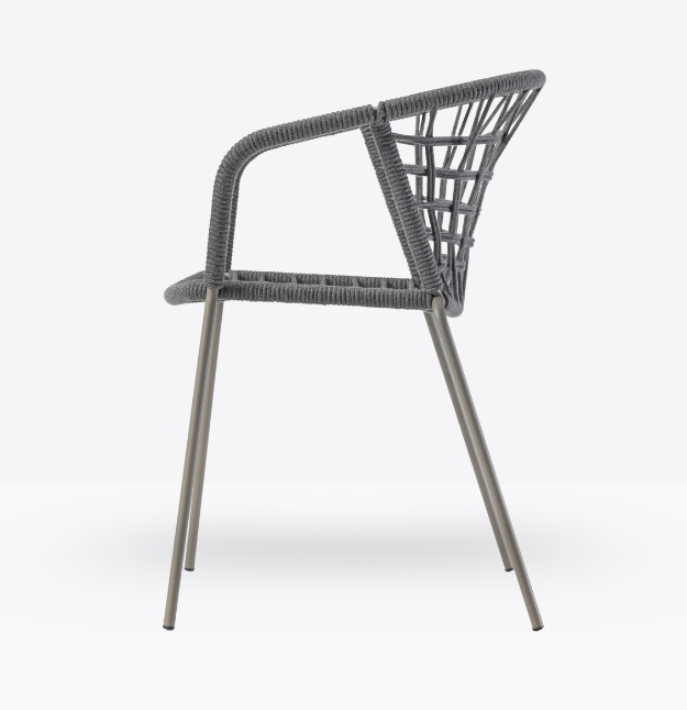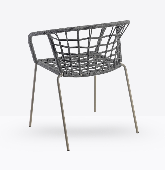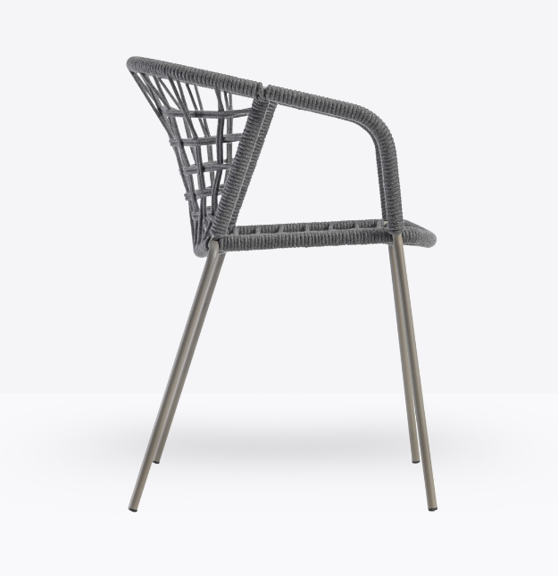 Sanela P è una moderna collezione di sedute per il contract, caratterizzata dall’intreccio artigianale della corda italiana in poliestere con anima acrilica, resistente alla luce e alle intemperie, antimacchia, idrooleorepellente con trattatameno al Teflon