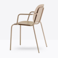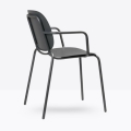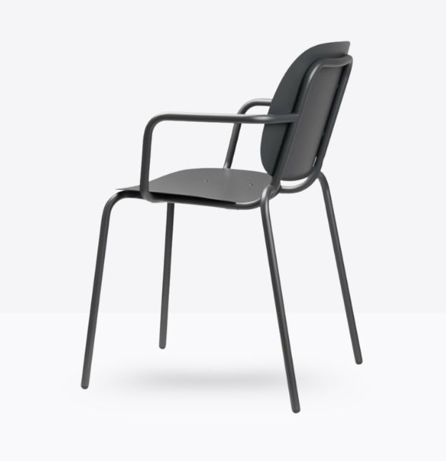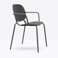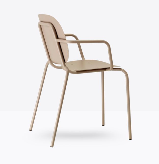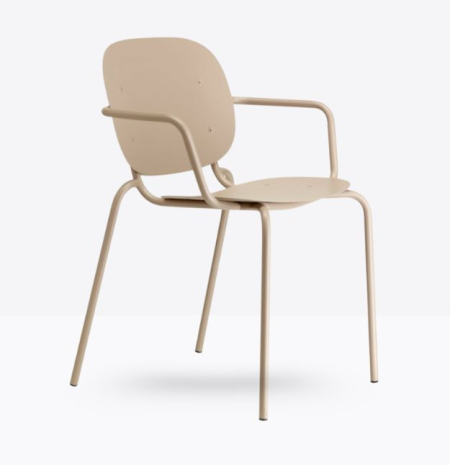 Seduta eclettica, camaleontica e multimaterica, Si-Si B è soprattutto una sedia smart che non basa la sua forza sul mero aspetto estetico, perché capace di interpretare il labile equilibrio tra indoor e outdoor. Un’unica scocca in lamiera zincata e verniciata, fissata allo snello telaio, funge indifferentemente da schienale e da seduta. Impilabile. Uso interno/esterno.