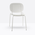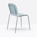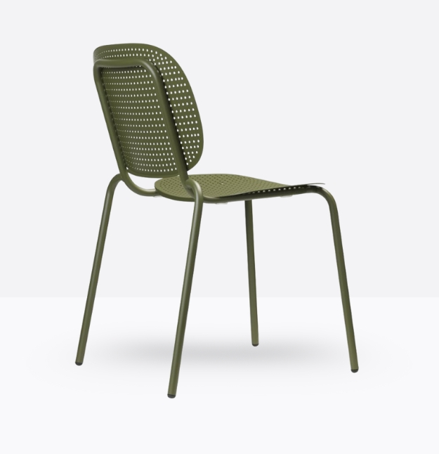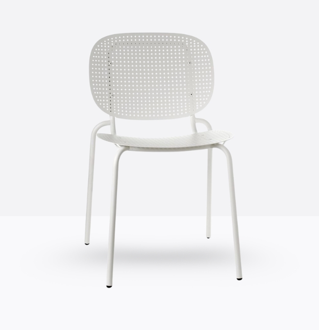 Seduta eclettica, camaleontica e multimaterica, Si-Si Barcode è soprattutto una sedia smart che non basa la sua forza sul mero aspetto estetico, perché capace di interpretare il labile equilibrio tra indoor e outdoor. Un’unica scocca in lamiera zincata e verniciata, fissata allo snello telaio, funge indifferentemente da schienale e da seduta. Impilabile. Uso interno/esterno.