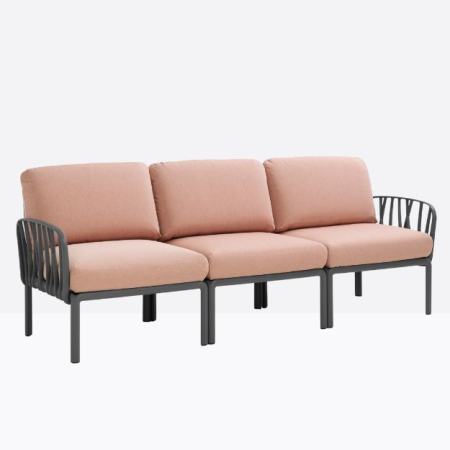 Social è un sistema modulare componibile di sedute lineari, angolari, curve e pouf che creano un divanetto replicabile all’infinito, pronto ad ospitare momenti di socialità. Sistema a due o tre sedute lineari e pouf in schiumato poliuretanico con cinghie elastiche nello schienale, telaio in acciaio e gambe in pressofusione di alluminio poste solo alle estremità.