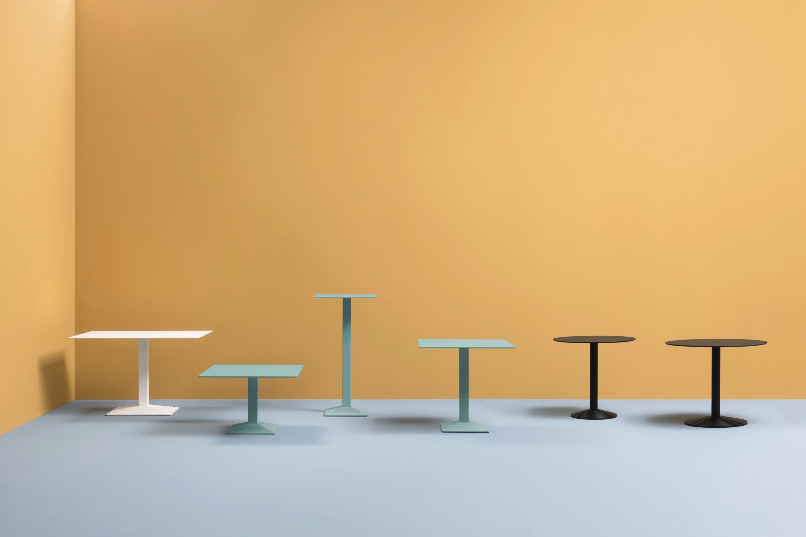 Step 4643 prende il nome dalla sua base, definita da un’architettura a gradini. Coffee table con base rettangolare in fusione di ghisa verniciata e colonna in tubo d’acciaio, abbinabile a ripiani rettangolari di diverse dimensioni e finiture. *piano tavolo escluso