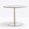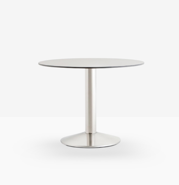 Il cerchio, archetipo classico e sempre attuale, Tonda 4153/50 è una base in ghisa sabbiata e colonna in acciaio o rovere, abbinabile a ripiani di diverse dimensioni e finiture. *piano tavolo escluso