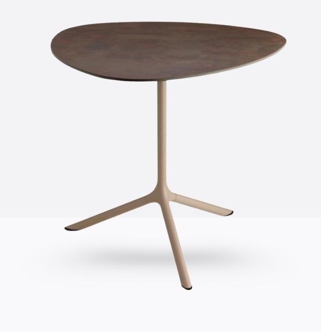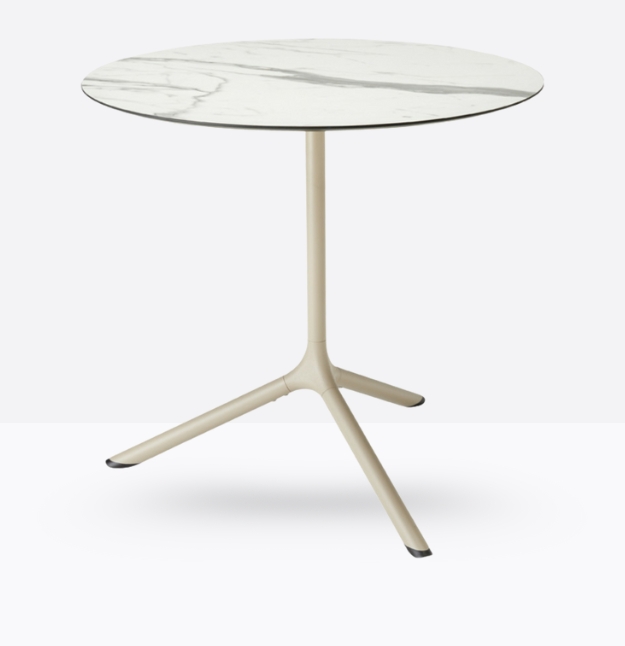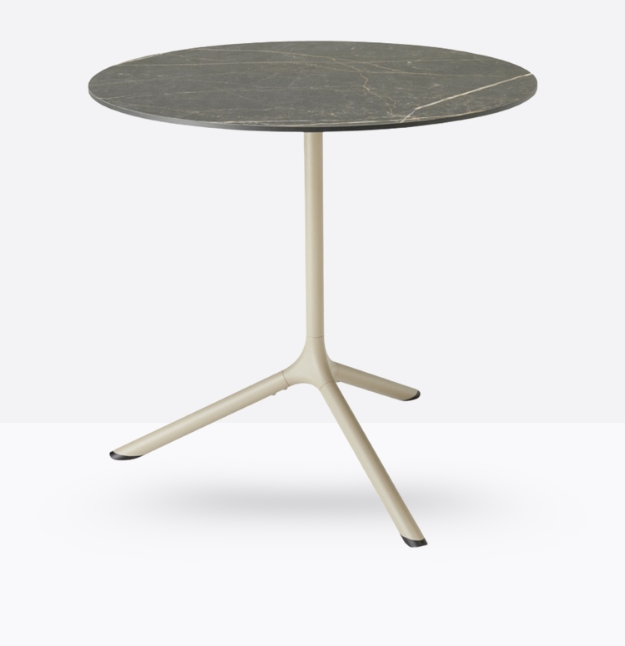 Tripé propone un progetto organico in cui funzionalità, minimalismo e riconoscibilità trovano la giusta sintesi. La base in acciaio con snodo in alluminio pressofuso non è infatti un tradizionale monoblocco, ma è composta da più elementi che possono essere diversificati e sostituiti in base all’occorrenza. *piano tavolo escluso.
