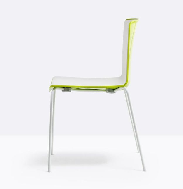 La sedia Tweet 890 è una seduta che combina il disegno razionale e pulito della scocca ad un’ampia scelta di telai e finiture, per garantire la massima adattabilità negli ambienti contract e domestici. Sedia impilabile con scocca in polipropilene stampato a bi-iniezione e struttura in tubo d’acciaio Ø14 mm.