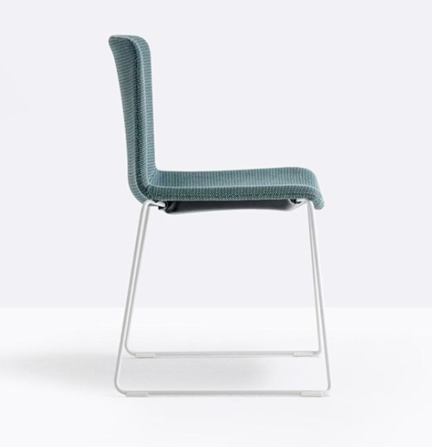 La sedia Tweet 897/2 è una seduta che combina il disegno razionale e pulito della scocca ad un’ampia scelta di telai e finiture, per garantire la massima adattabilità negli ambienti contract e domestici. Sedia impilabile con scocca in polipropilene stampato a bi-iniezione e struttura a slitta in tondino d’acciaio Ø11 mm.