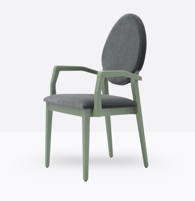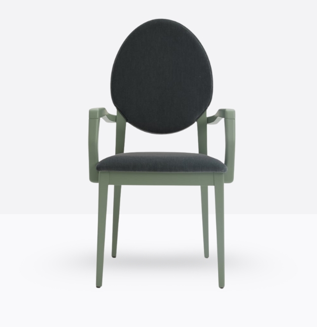 La poltrona Victoria 203 ha una struttura in legno di faggio massello ed uno schienale in legno di faggio massello rivestito, può essere personalizzata in tutte le tinte legno e i colori laccati visibili in questa scheda o alla sezione finiture del sito, nonchè in tinta cliente o colori a campione, lo schienale è imbottito, la seduta, dotata di cinghie è imbottita su fusto ed entrambi possono essere tappezzati con stoffa cliente o con i rivestimenti visibili alla sezione finiture del sito.