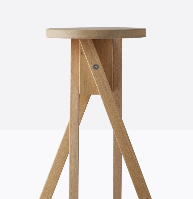 Lo sgabello Wasita rappresenta con semplicità quel gesto primario che riunisce pochissimi pezzi legati a secco per una struttura solida e durevole